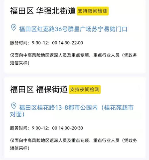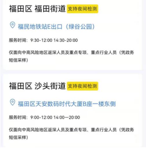 福田区核酸检测采样点