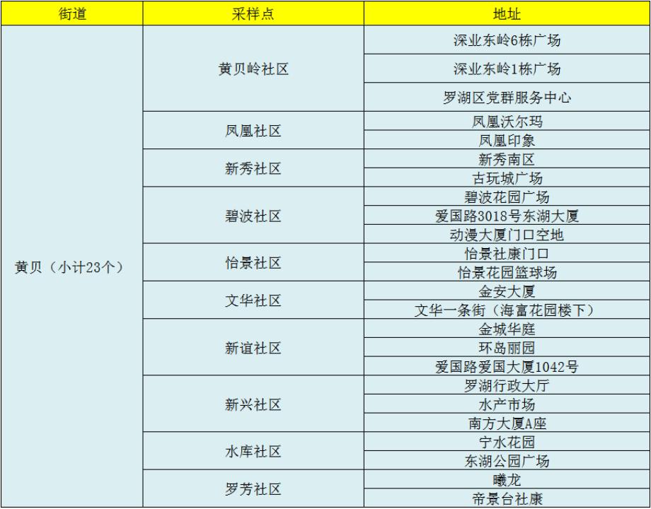 罗湖区核酸检测采样点
