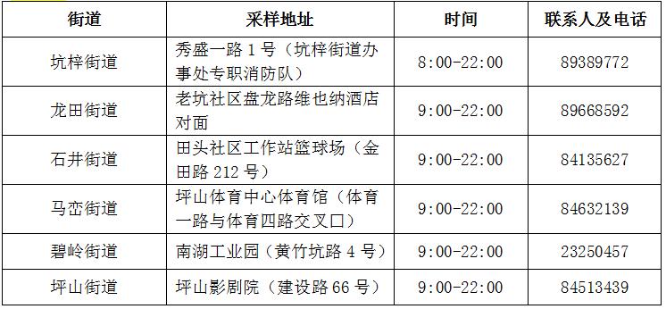 坪山区核酸检测采样点