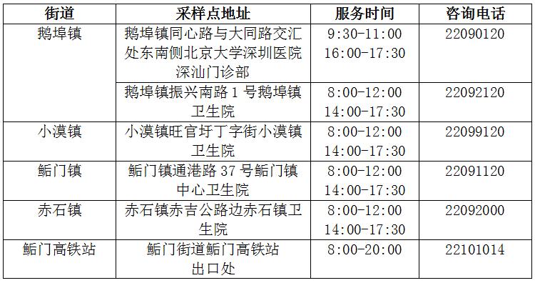 大鹏新区核酸检测采样点