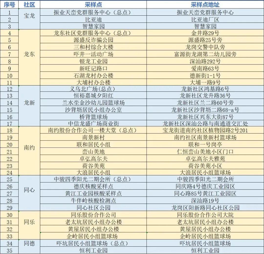 龙岗区核酸检测采样点