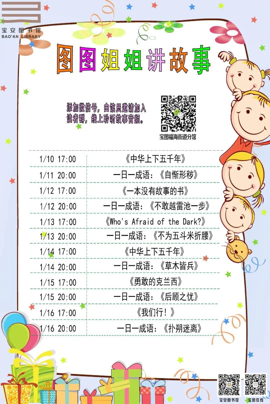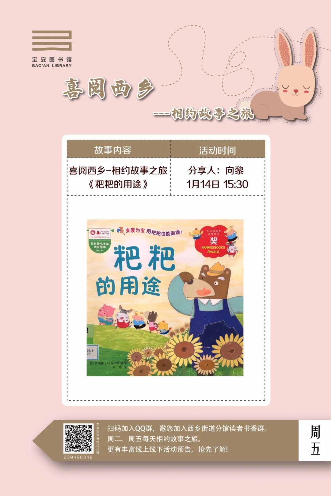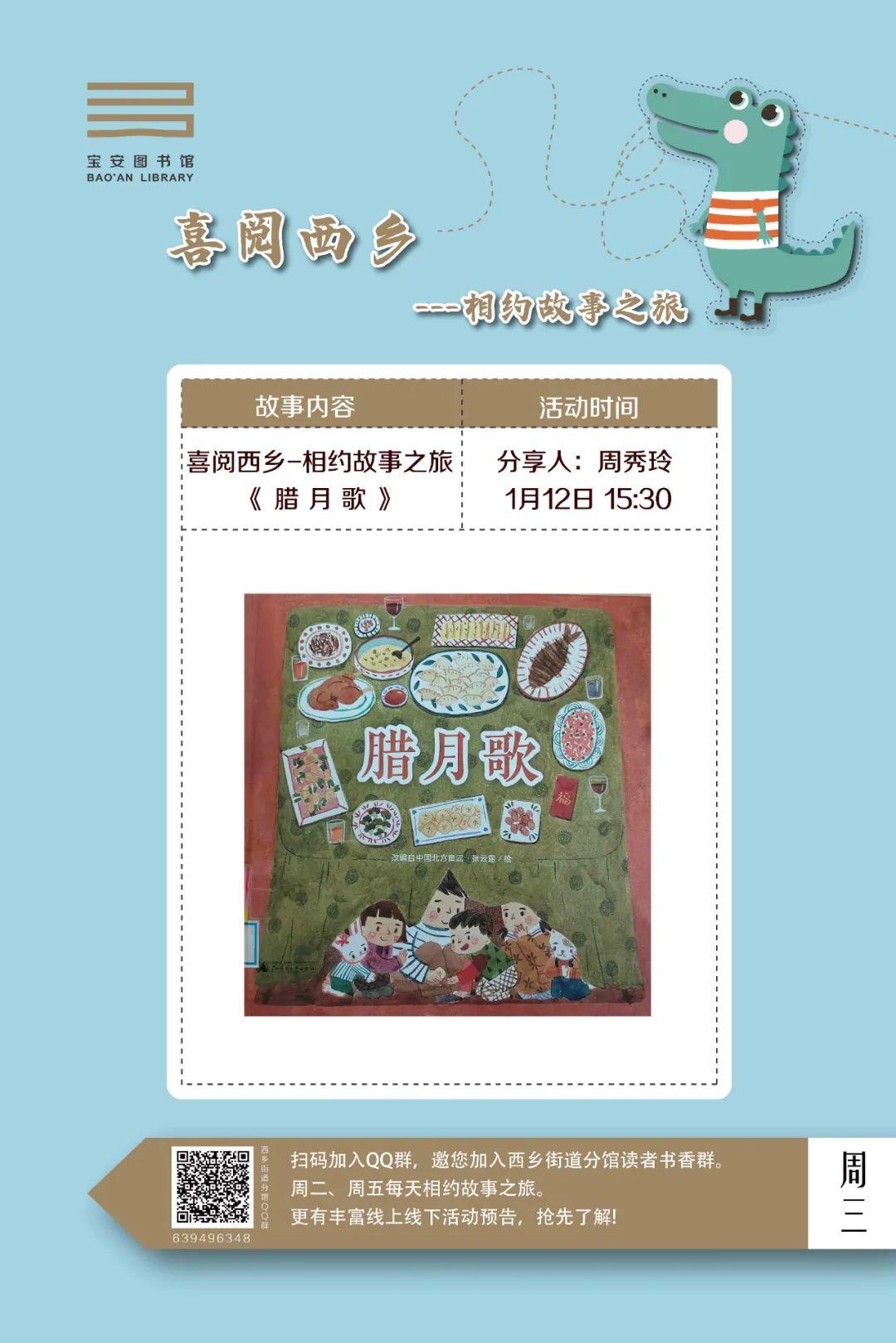 1月12日-1月18日 分馆活动:松岗 | 福海 | 福永 | 石岩 | 西乡 | 燕罗