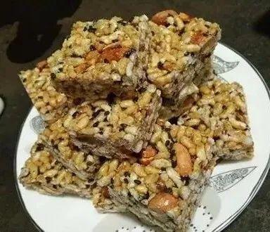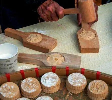 深圳的客家人多为靠山,即使盐田、葵冲、大鹏靠海,旧时也属交通不便的边远山区。所以他们办的年货,多是自晒腊肉、鱼干,自制腊鸭、腐竹、豆干、笋干,自酿糯米黄酒等;家家户户普遍做的年糕茶果,是蒸喜糕、蒸甜板、“打拗饼”(广府人叫“沓米饼”)、“打米珵”“蒸圆笼糕”等,希望日子“步步登高”、“一年甜到底”。“打米珵”就是用糖浆拌爆米花,冷却切成方形小块。“打拗饼”是将米粉、糖、花生拌好压进像做月饼的饼模里,然后进炉烤熟,吃时用力拗一小块吃,形象地称拗饼。“蒸圆笼糕”是将二三十斤糯米粉、红糖五六斤拌匀,倒在一个大圆笼里蒸,因为它直径二三尺、糕厚一尺五多,连蒸一个夜晚才能蒸熟。以上年糕茶果,是大年初一敬神必具的斋祭品,也是过年招待客人的糖果食品。