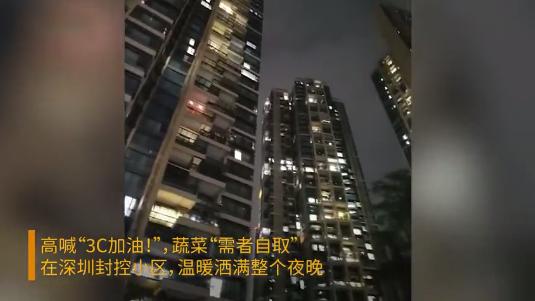 ▲深圳某小区3C栋因疫情被封控小区居民为封楼居民加油打气