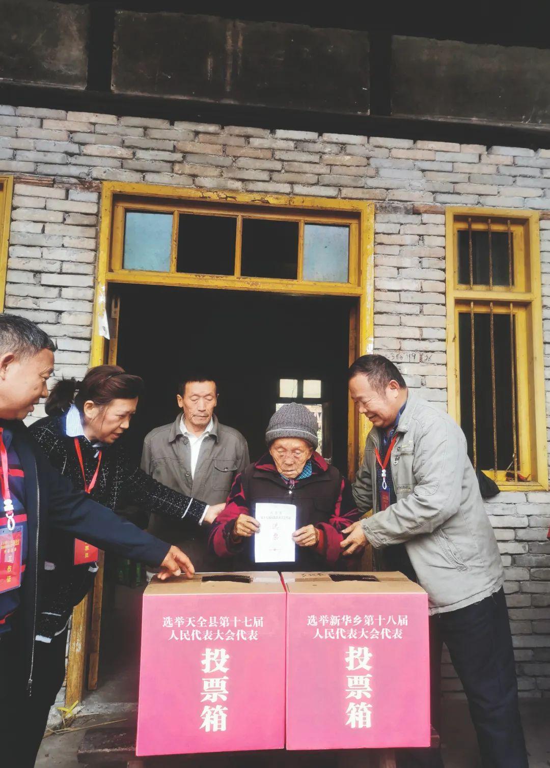 “106岁老人的第18次选举”。四川省雅安市天全县新华乡永安村8组的106岁老人李朝兰,迎来了她人生中的第18次换届选举投票——2021年10月15日,她依法行使自己的权利,为产生新一届县乡两级人大代表投出宝贵一票。新华乡地处天全县山区腹地,山高坡陡,不少农户居住分散。同时,像李朝兰这样行动不便的老人也不在少数。为了方便这些选民有效行使选举权,按照选举法的规定,新华乡选举委员会专门安排工作人员带着流动票箱“上门服务”。