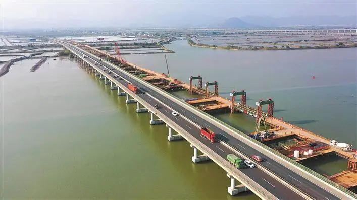 长沙湾跨海特大桥为深汕西改扩建全线控制性工程,全长 2108 米,紧邻出海口,潮汐频繁,潮差流速大,水文条件复杂,施工难度大。