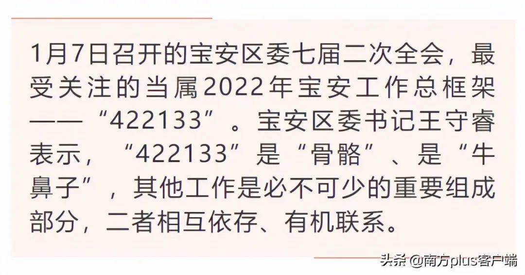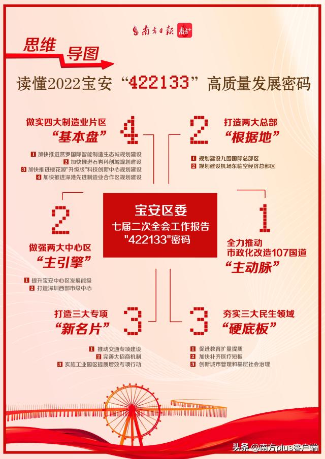 湾区竞合、时不我待。踏上新征程、进入“新赛道”,宝安将以“422133”发展主框架为核,重点攻坚,在新的赶考之路上实现新突破、构建新格局、展现新气象。