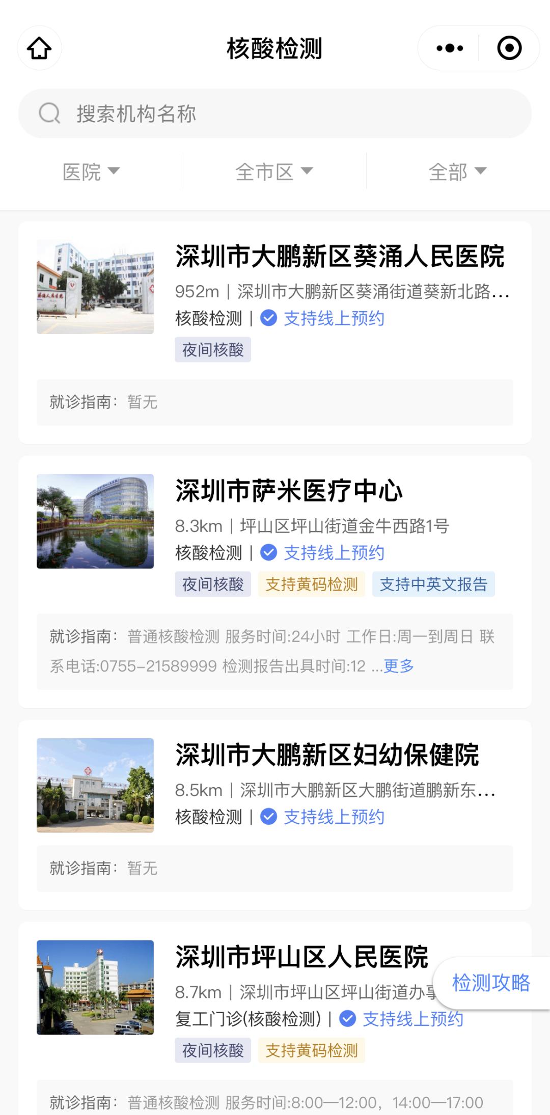 专项人群核酸采样点同样可以通过“大鹏政务服务”微信公众号查询——