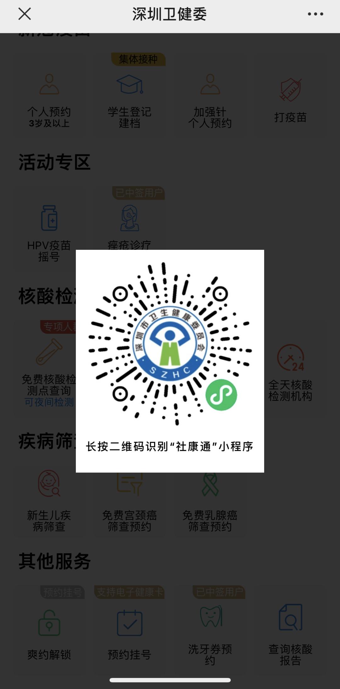 2. 长按二维码进入“社康通”小程序,就能看到社康名单,支持线上预约。