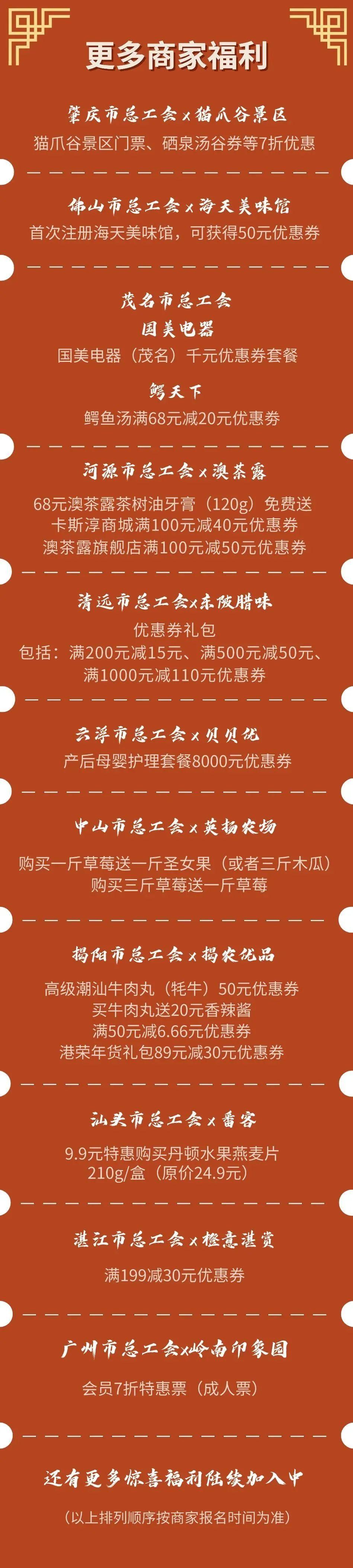 今年春节,为普惠粤工惠实名认证会员,响应“情暖劳动者 喜粤过大年”号召,广东省总工会联合各地级以上市总工会、省级产业工会,一起普惠全省工会会员,让职工感受来自“娘家人”的新春祝福。