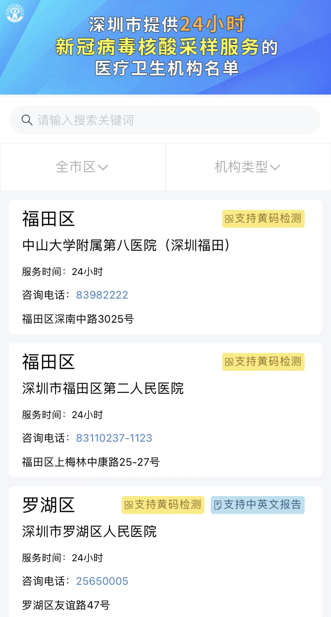 专项人群核酸采样点同样可以通过“深圳卫健委”微信公众号查询——