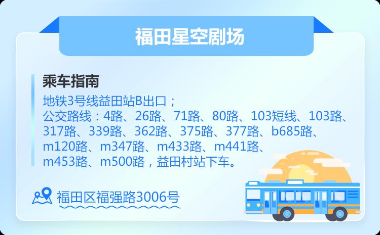 福田星空剧场(福强路3006号,益田地铁站B出口附近,演出场地不提供停车位,请绿色出行)