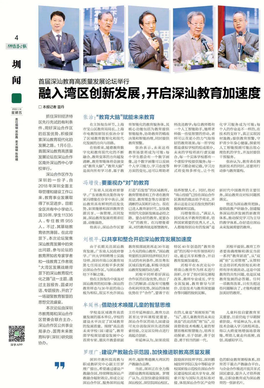 他还为深汕教育把脉,提倡政教产研融合,创建服务深汕经济发展的新教育体系,推动探究学习为主导的教学体系,办好适应深汕未来发展需要的教育。