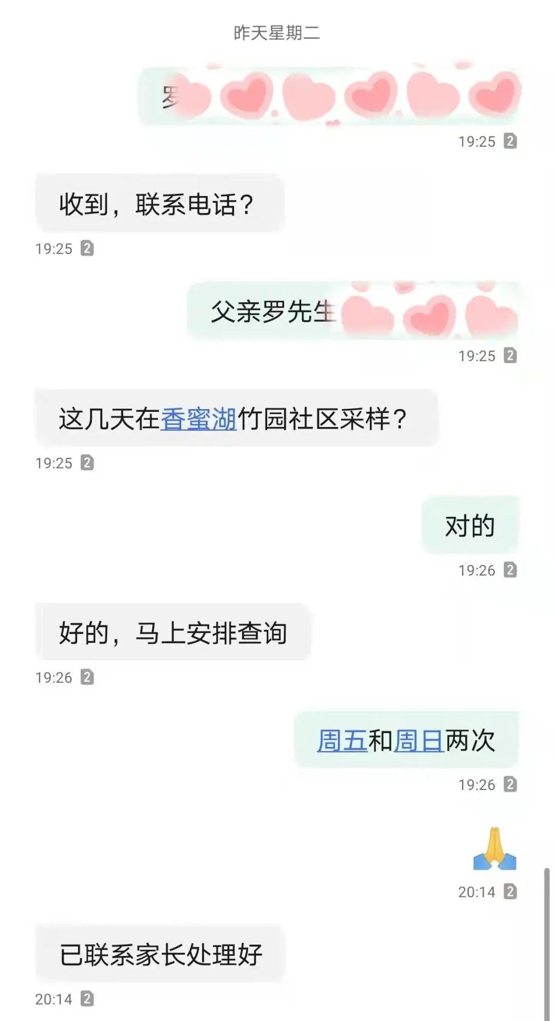 志愿者将问题上报后,福田区工商联领导高度重视,迅速联系福田区卫生健康局相关负责人。发送信息仅一分钟后,就收到了“好的,马上安排查询”的回复。