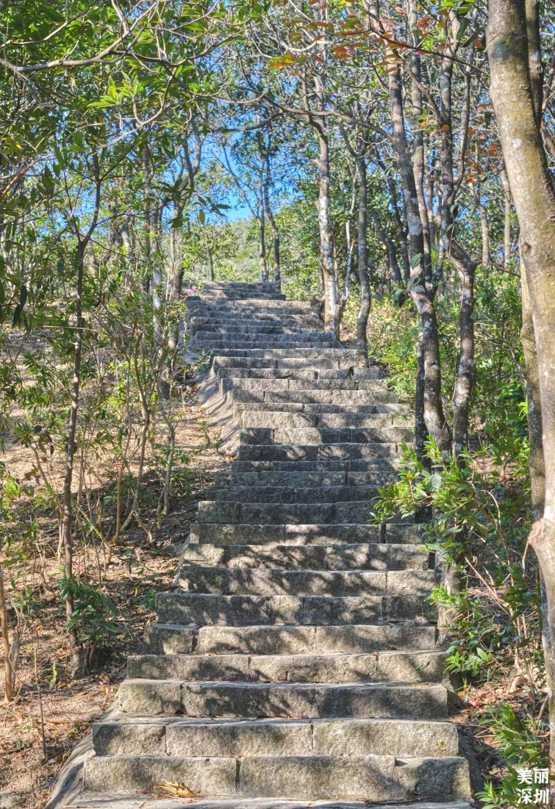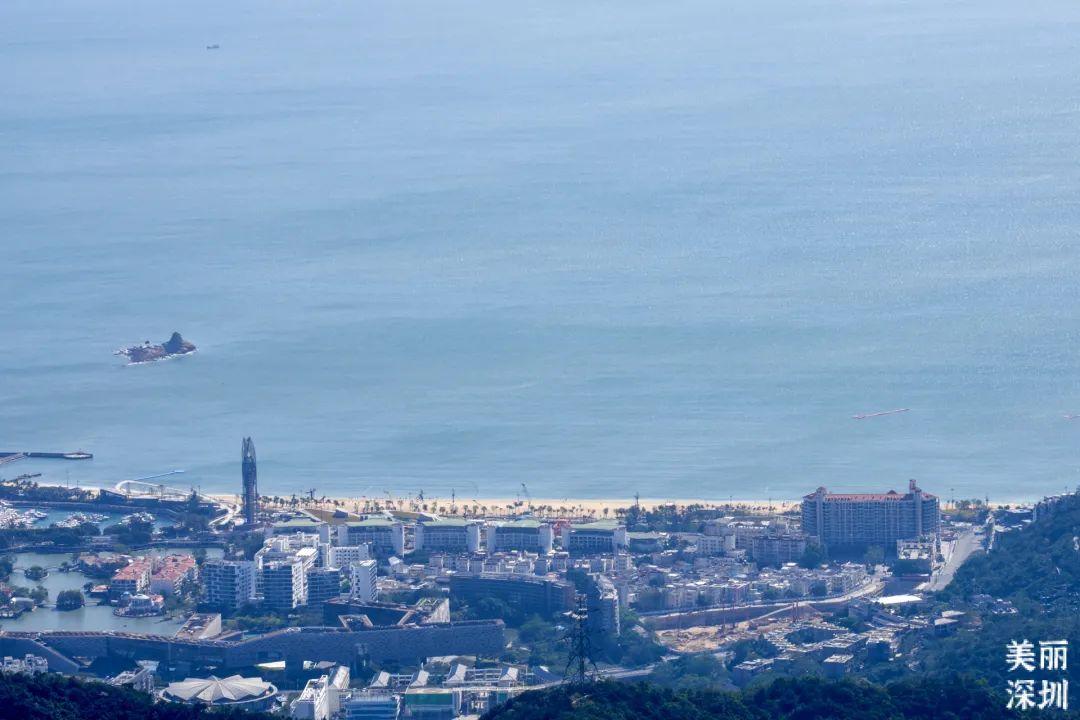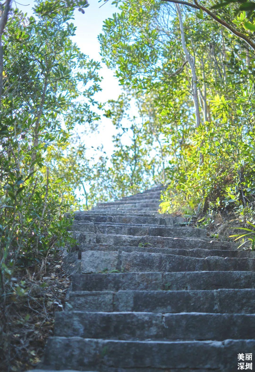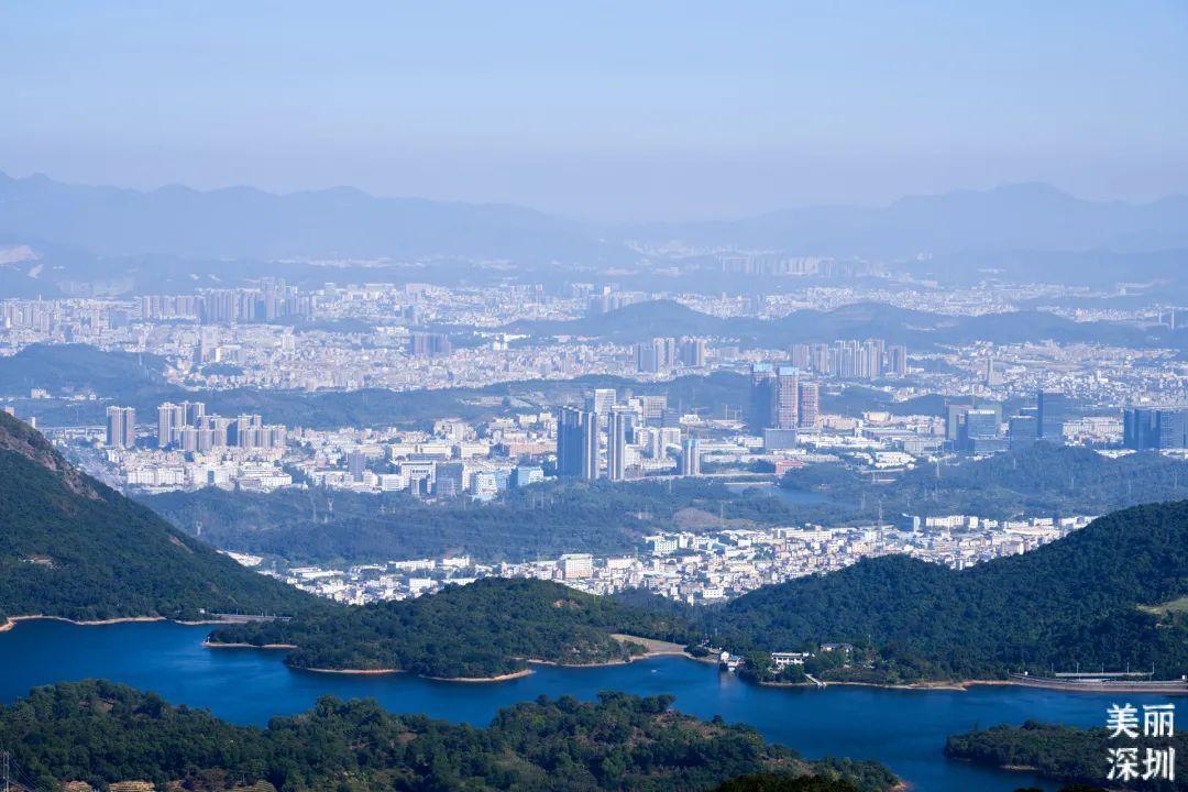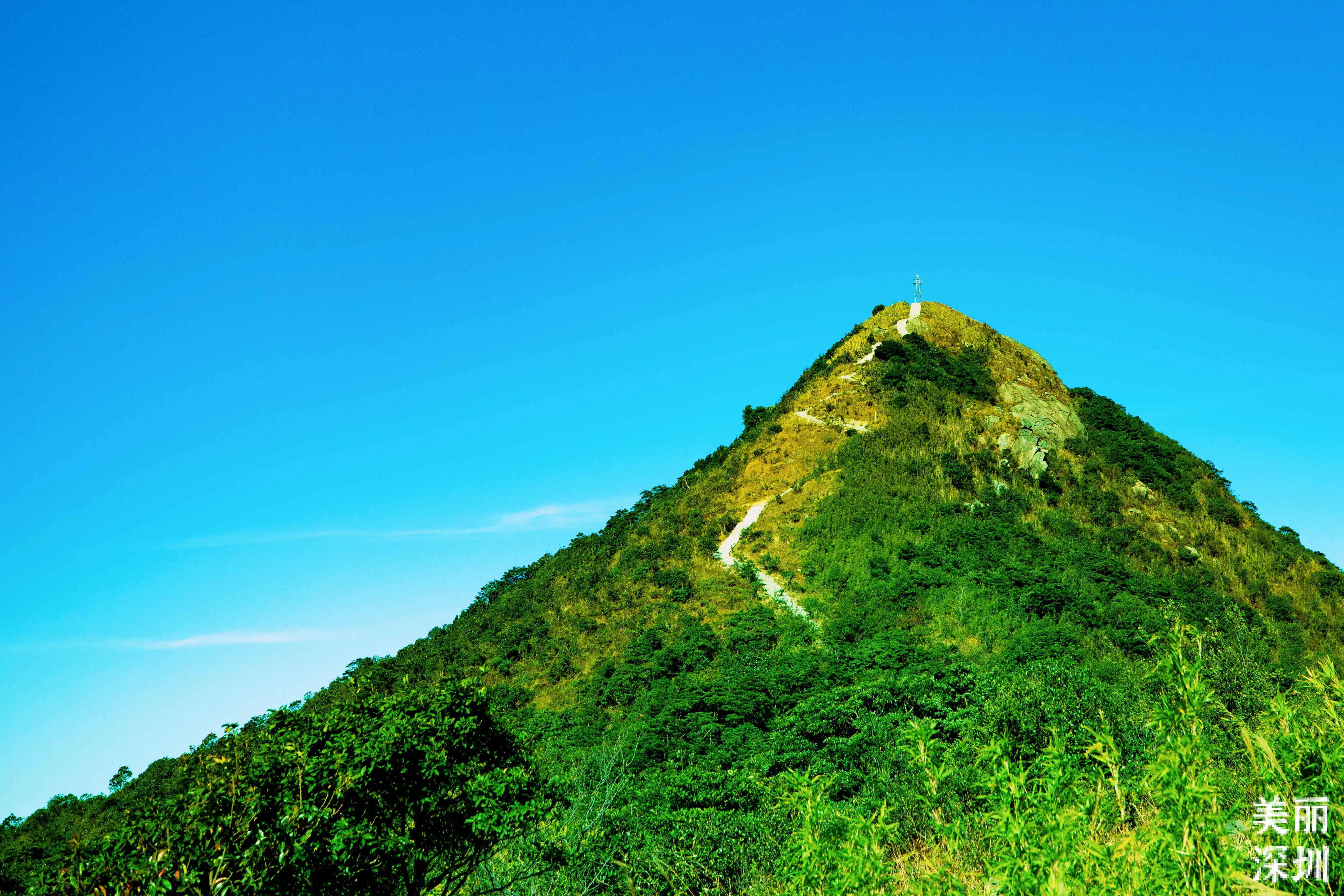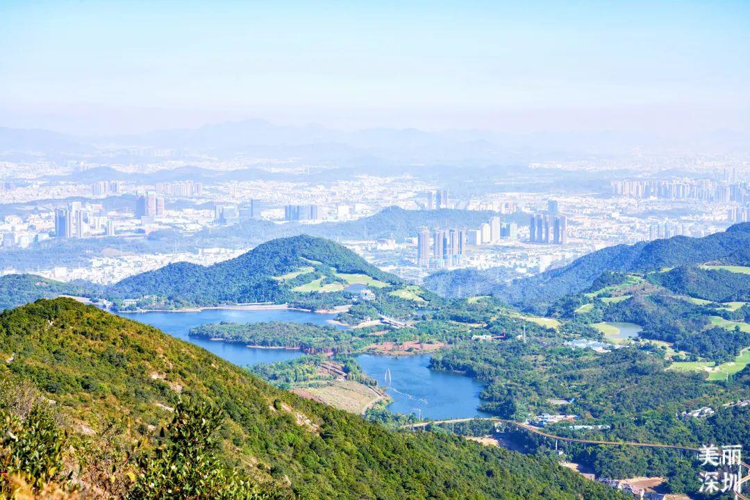 登上山顶瞭望,盐田港、大小梅沙、三洲田风景区尽收眼底;西北方向的横岗片区、东北方向的坪山城市群和西南方向的罗湖高楼静伫云雾中,蔚为壮观;南方香港西贡群山和海湾豁然呈现于眼前,海天一色,景色绝佳。
