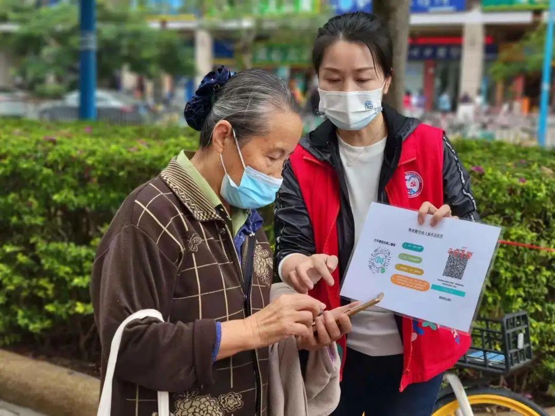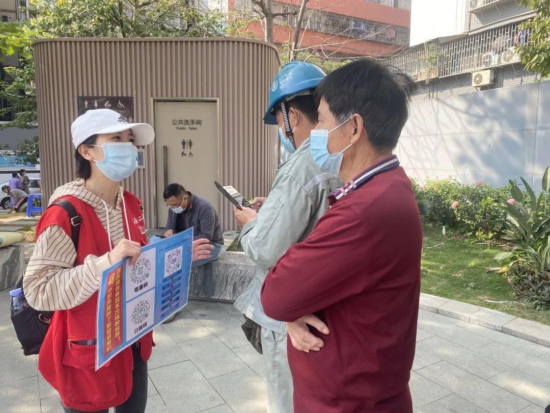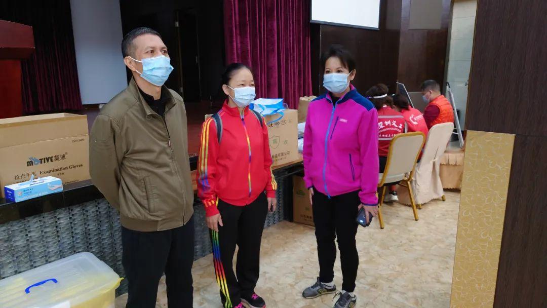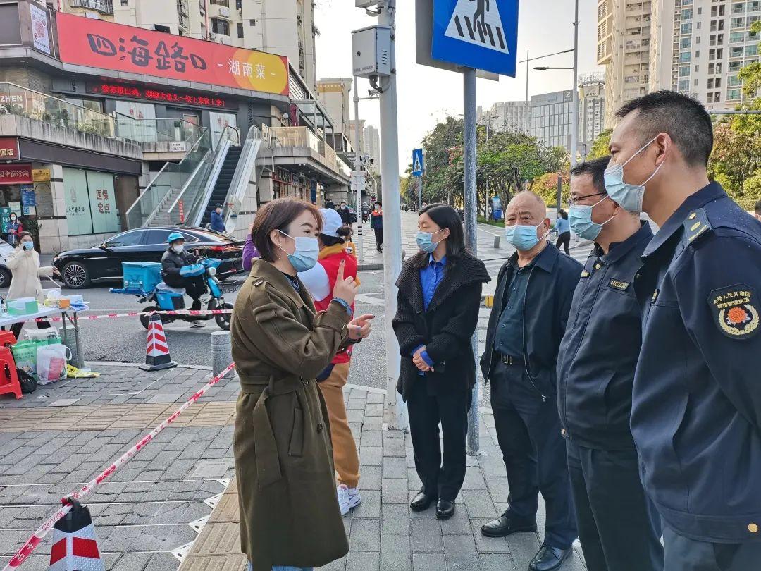 ▲南头街道妇联主席赵旭(右二)下沉驻点社区参与常态化疫情防控工作