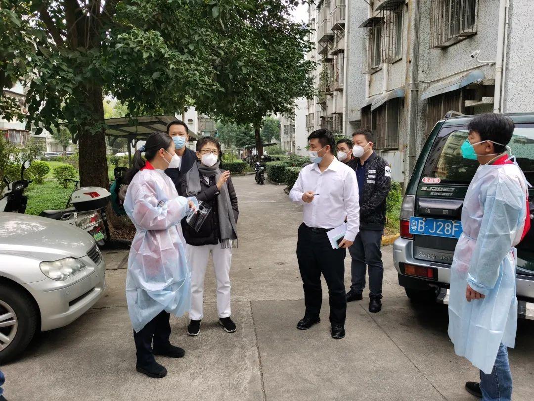 ▲区妇联主席蒋倩(右三)下沉驻点社区了解全员核酸、疫情防控工作