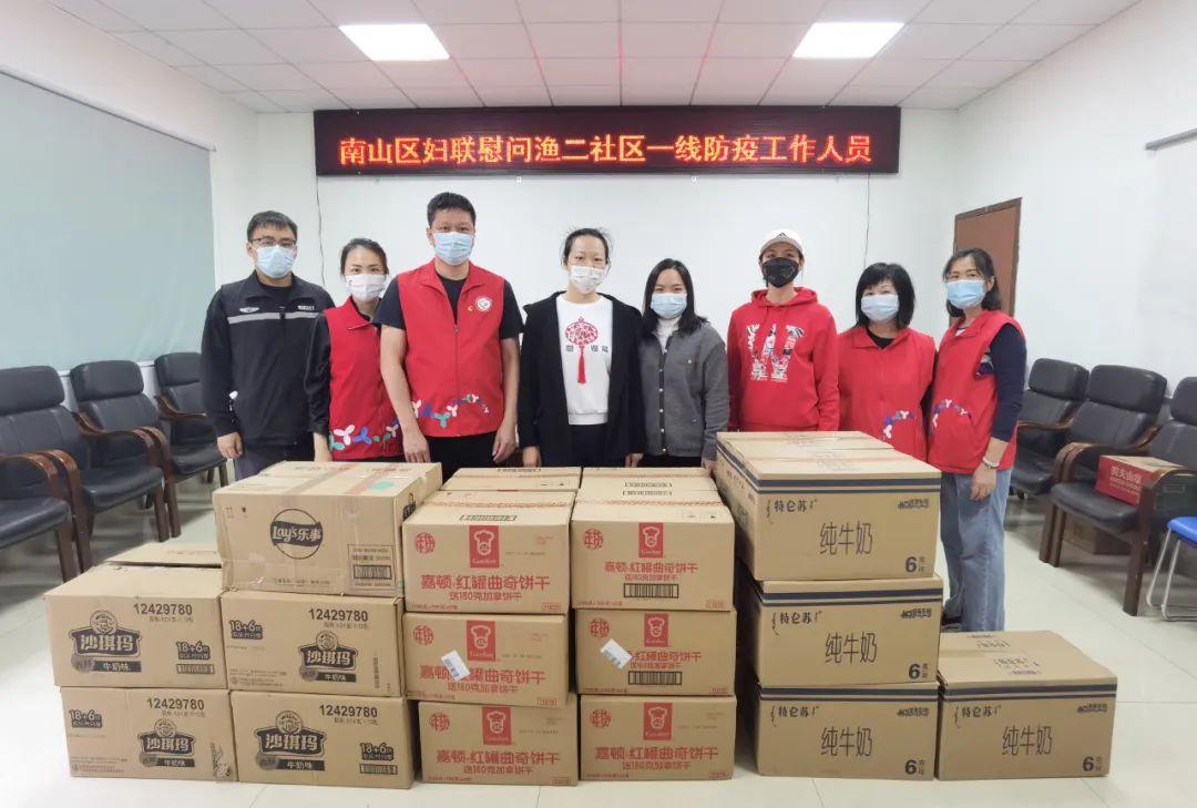 区妇联主席蒋倩带队,主动投身挂点社区疫情防控工作,深入挂点蛇口街道渔二社区了解全员核酸、疫情防控工作,并慰问社区疫情防控一线工作人员,送上慰问品。