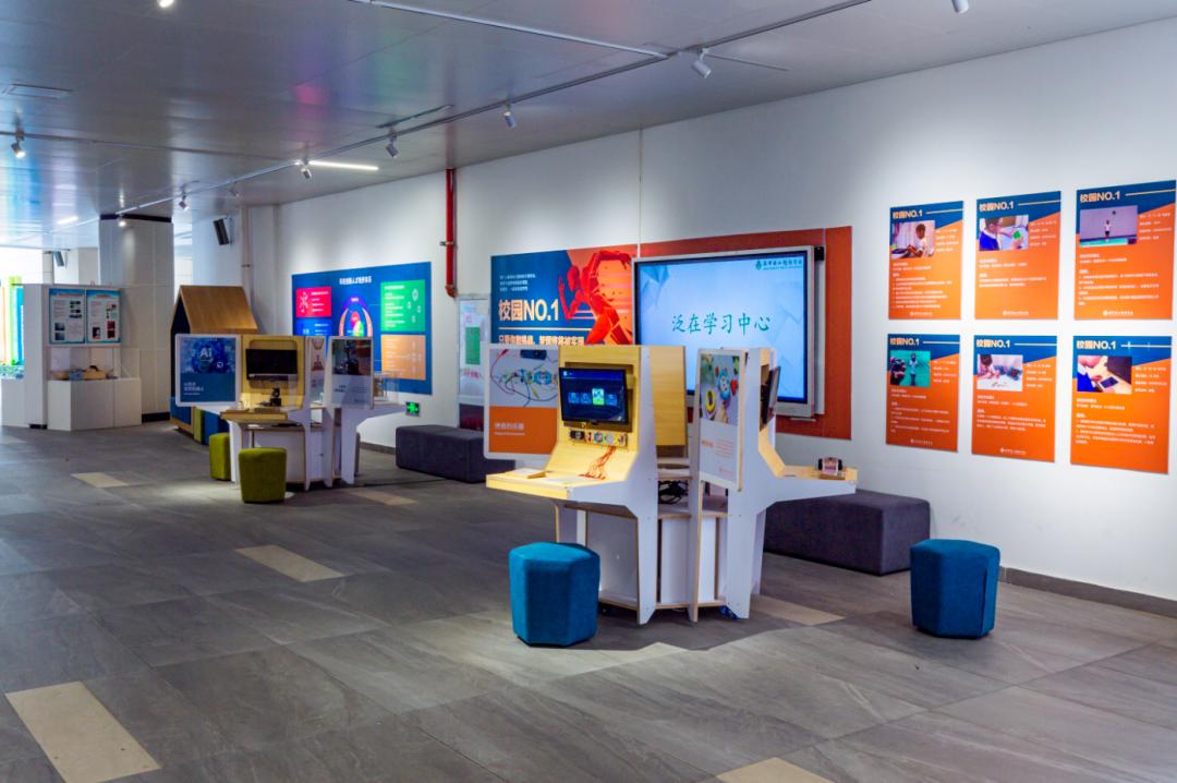深中南山创新学校是一所引领未来的创新学校,学校基于泛在学习(U-Learning)的理念,旨在为学生和社区儿童提供一个泛在学习空间,让所有人都可以提供资源,分享资源,让校园成为开放的图书馆、博物馆、科技馆,每个空间都适合集体或个体学习,利用在校时间和课余时间为儿童创造、建设学习空间。学校还拥有创客体验室、成果发布厅、走廊科技馆、漂流图书廊、天台科技园等组成的泛在学习空间,为儿童友好优先发展提供了有效学习、快乐交往、自由成长的广阔天地。
