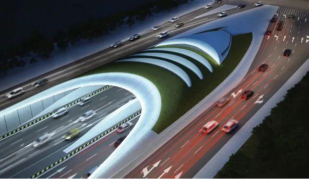 全隧道通过采用搪瓷钢板安装、隧道各出入口自采用GRC板装饰面和隧道顶部采用造型装饰雨篷设计,大大提高城市地下道路的整体形象和工程品质。
