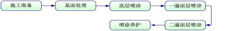 底层涂料采用压送式喷涂机喷涂,空气压力为0.4~0.6 MPa,喷口直径宜为4~8 mm。喷涂时喷枪要垂直于被喷面,距离控制在1~2 m。底层涂料喷涂、养护完成经验收合格后,方可进行第一遍面层涂料施工。