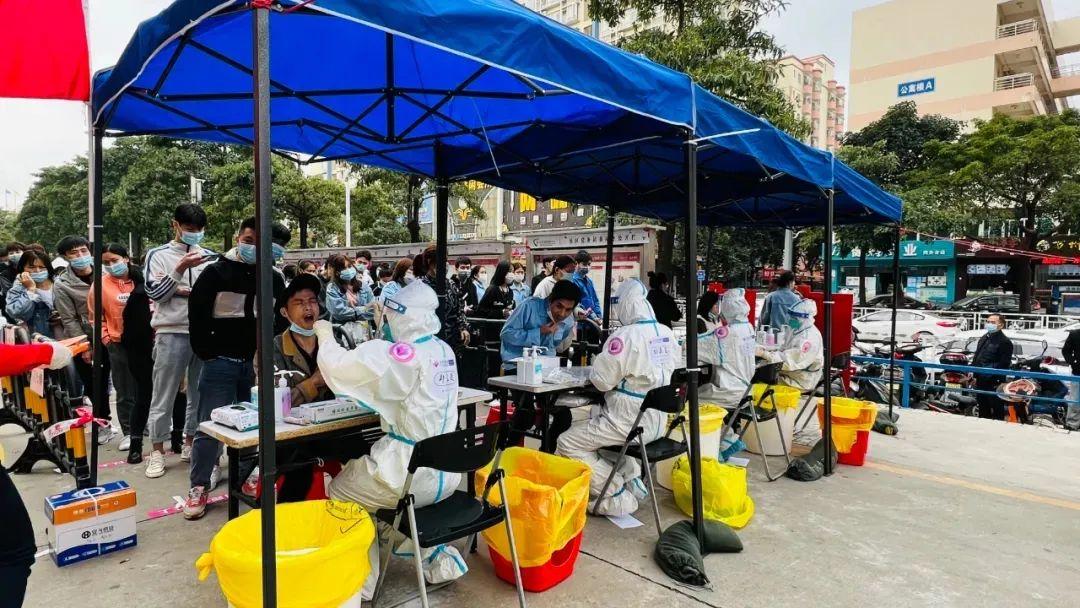 1月8日,宝安区松岗街道团工委、志愿者联合会就组织了300多名防疫志愿者到街道38个核酸检测采样点,协助社区做好全员核酸检测工作。松岗街道网格综合管理中心出动了374名网格员到街道13个社区协助核酸检测采样工作。潭头社区的中共临颍县驻深流动党员支部委员会积极动员流动党员发挥先锋模范作用,踊跃参与潭头社区全员核酸检测,筑起一道流动的红色生命防线。