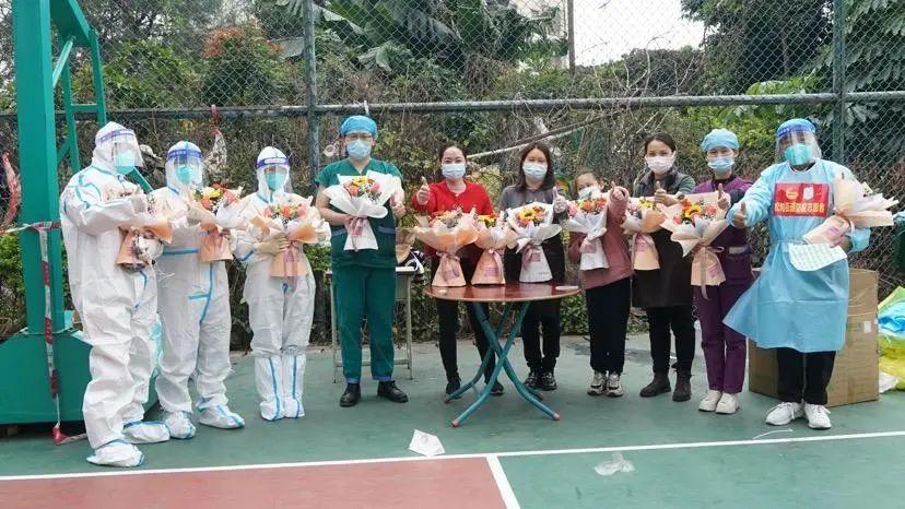 1月12日上午,花店老板娘曹小姐来到松岗社区金花围篮球场核酸检测采样点,为医护人员、社区工作者与志愿者们送上了十几捧鲜花。曹小姐女儿还为现场的医护人员们跳了一首《听我说谢谢你》手语舞蹈歌,之后两人便匆匆离开。工作人员收到鲜花后,在朋友圈发文称:“这几天的劳累,被一束鲜花、一支舞蹈化解了。”