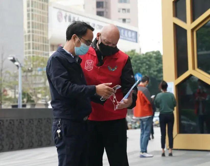 同时,南山国际化交流中心的涉外社工们在街道的号召下,奔赴各个核酸检测点,在外籍人士主要聚集地协助核酸扫码、秩序维护等工作。由于“粤核酸”系统只有中文,涉外社工也随时应外籍人员的需求,协助他们注册“粤核酸”码。他们用自己的热情给这些异国人带来如家的温暖。