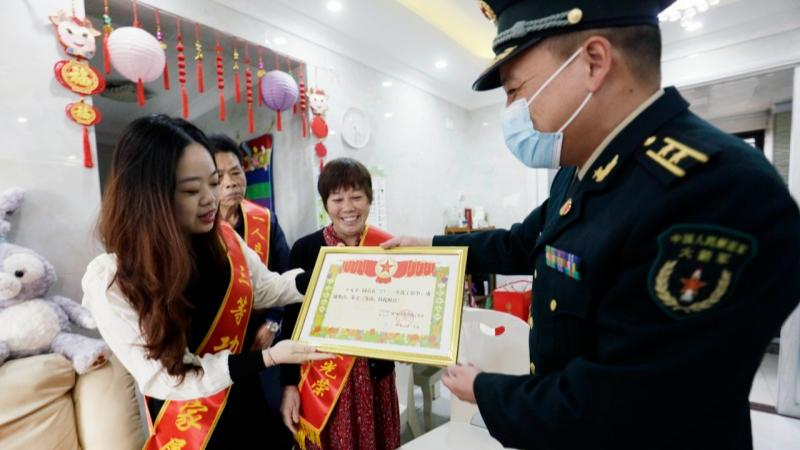 ● 近日,宝安区退役军人事务局、区人武部、街道服务站、人武部联合部队代表等,来到航城街道现役军人汪选平的家中,为他的家属送上三等功喜报及慰问品。☞