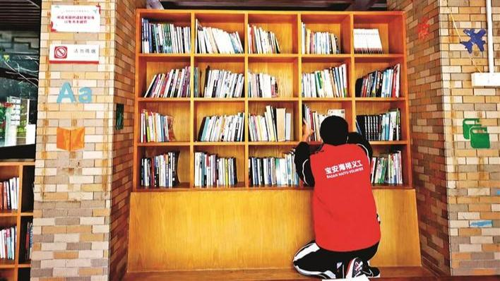 ● 落实“双减”政策后的第一个寒假,海裕社区深业新岸线小区的公益图书角迎来青少年“红马甲”。☞