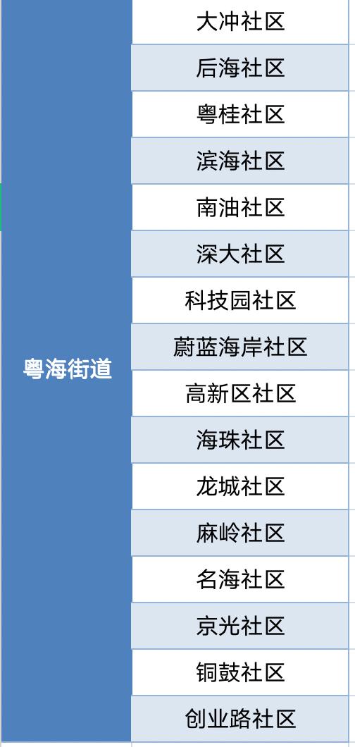 南山区各街道社区一览图