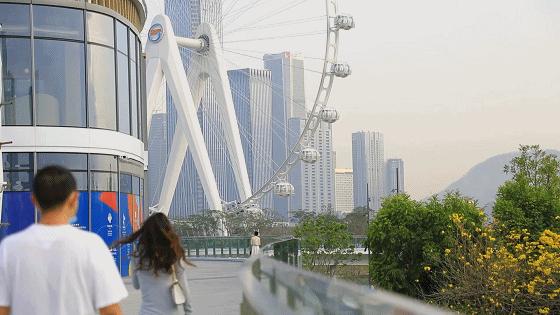 市民何先生是宝安中心区“蝶变”的见证者。何先生说到,如今,超级摩天轮“湾区之光”重构城市天际线、滨海文化公园成网红打卡地,中央绿轴两侧公共文化设施与摩天高楼交相辉映,一座现代化、国际化的滨海城区已初显峥嵘。