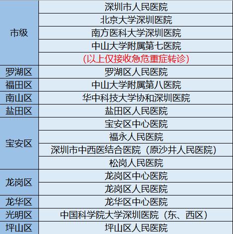 同时,在深圳120急救网络内设置17家定点接收医院。其中,4家市级医院、13家区级医院。4家市级定点医院仅接收急危重症转诊病患,所有封控区与管控区病患均先送往区级定点医院。