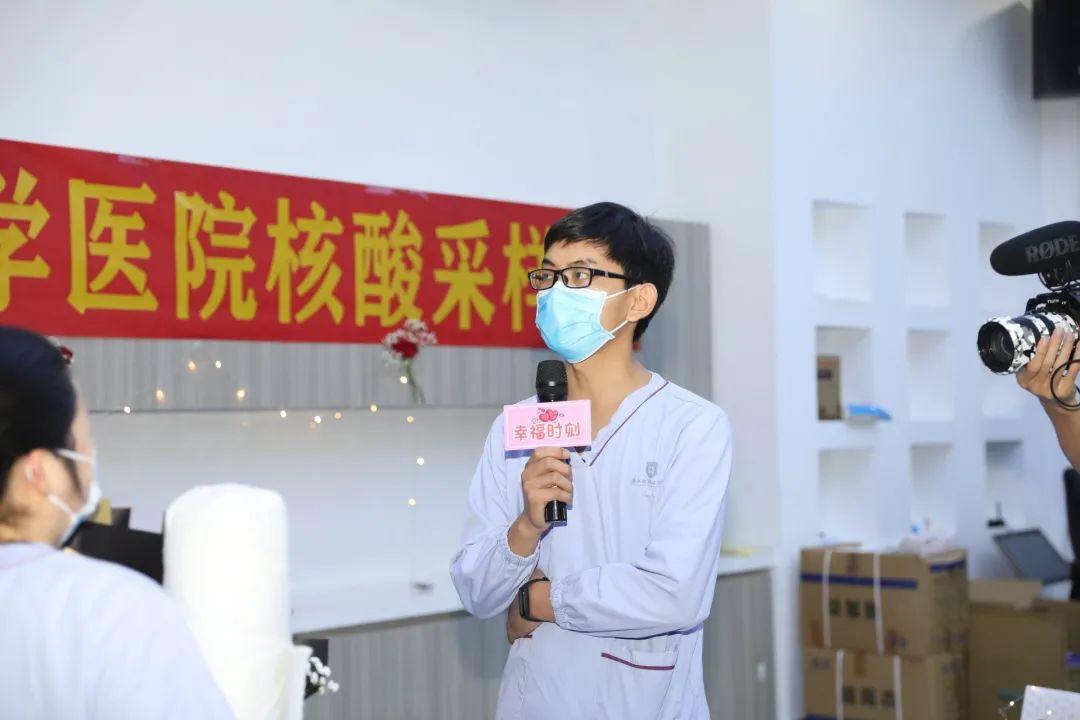 16日下午2点半,核酸采样休息间隙,才得空的刘刚注意到手机有两个未接电话,于是给记者回拨过来。他说,医院和社区知道我们的订婚小插曲后,想为我们弥补这个遗憾,提前一天告诉了我这个策划,“当时我也感觉到医院和社区对我们的关爱,很温暖”。15日,医院专门把两个年轻人安排在一个核酸采样点,“那天我们从早上8点一直工作到晚上10点”,刘刚说。