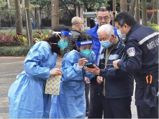 “大爷,您这是粤康码,我们要扫粤核酸码。”“就是这个,我前两天做核酸就是这个。”“不是的,您看其他人的......”“你怎么回事,到底会不会?”面对质疑,荔香学校谭爽仍耐着性子,帮大爷登录小程序打开粤核酸并扫码。