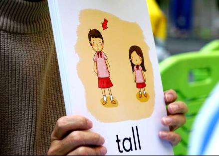 语文检测通过“聪明的小红帽”和“大卫上学去”两个情景剧的形式,巧妙地将闯关路线设置成四、五个智趣相生的关卡,分别考察学生的汉语拼音、识字、背诵、口语交际等能力。整个检测过程,既充满挑战,又饱含童趣。在老师鼓励目光的注视下,个别羞涩的小朋友也鼓起勇气,大胆表达。