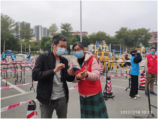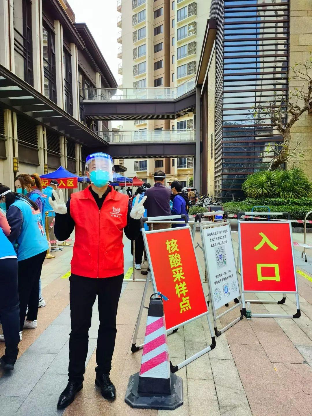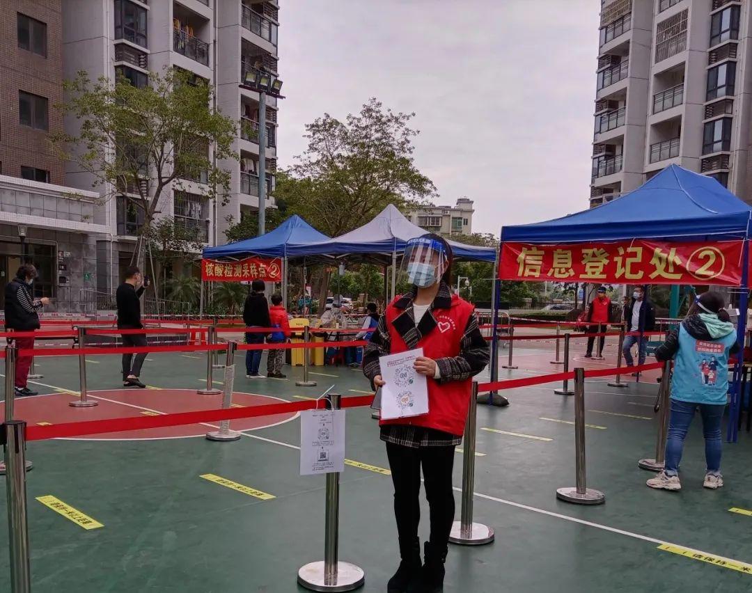 来自大鹏中心小学的张燕老师参加了下沙社区核酸检测点志愿服务,她说:“假期的义工活动,充实而温暖。看到身边义工们热情的引导,暖心的话语,让我感受到义工们为抗疫而竭尽全力地付出与无私,我为能成为他们中间的一份子而感到幸运与自豪。加油吧,战友们!”