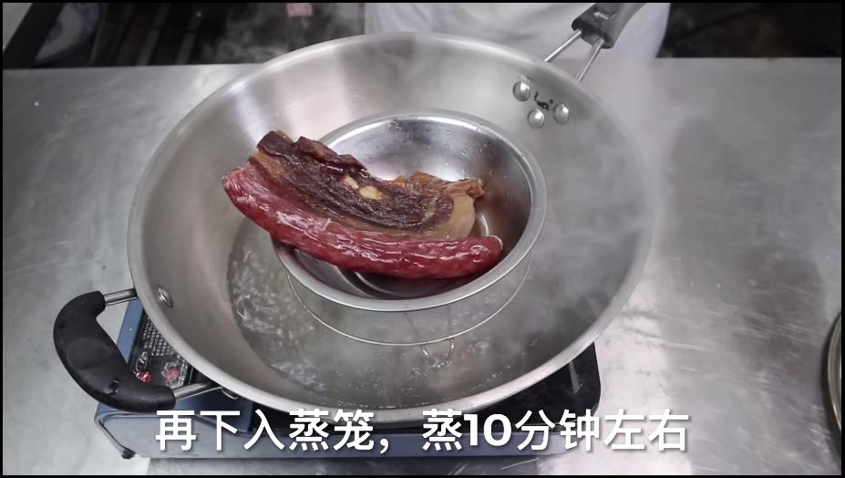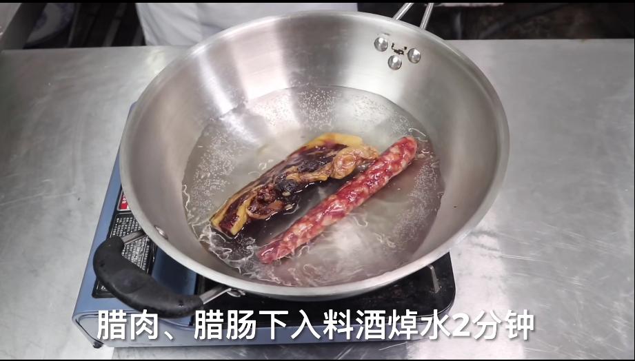 1、大米加水泡30分钟,腊肉采用隔层分明的,腊肠采用七分瘦的,将它们下锅焯水2分钟,再下入蒸笼,蒸10分钟。
