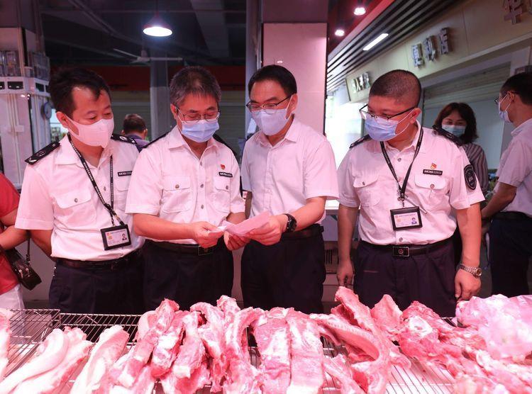 宝安市场监管局执法人员检查农贸市场肉类票证