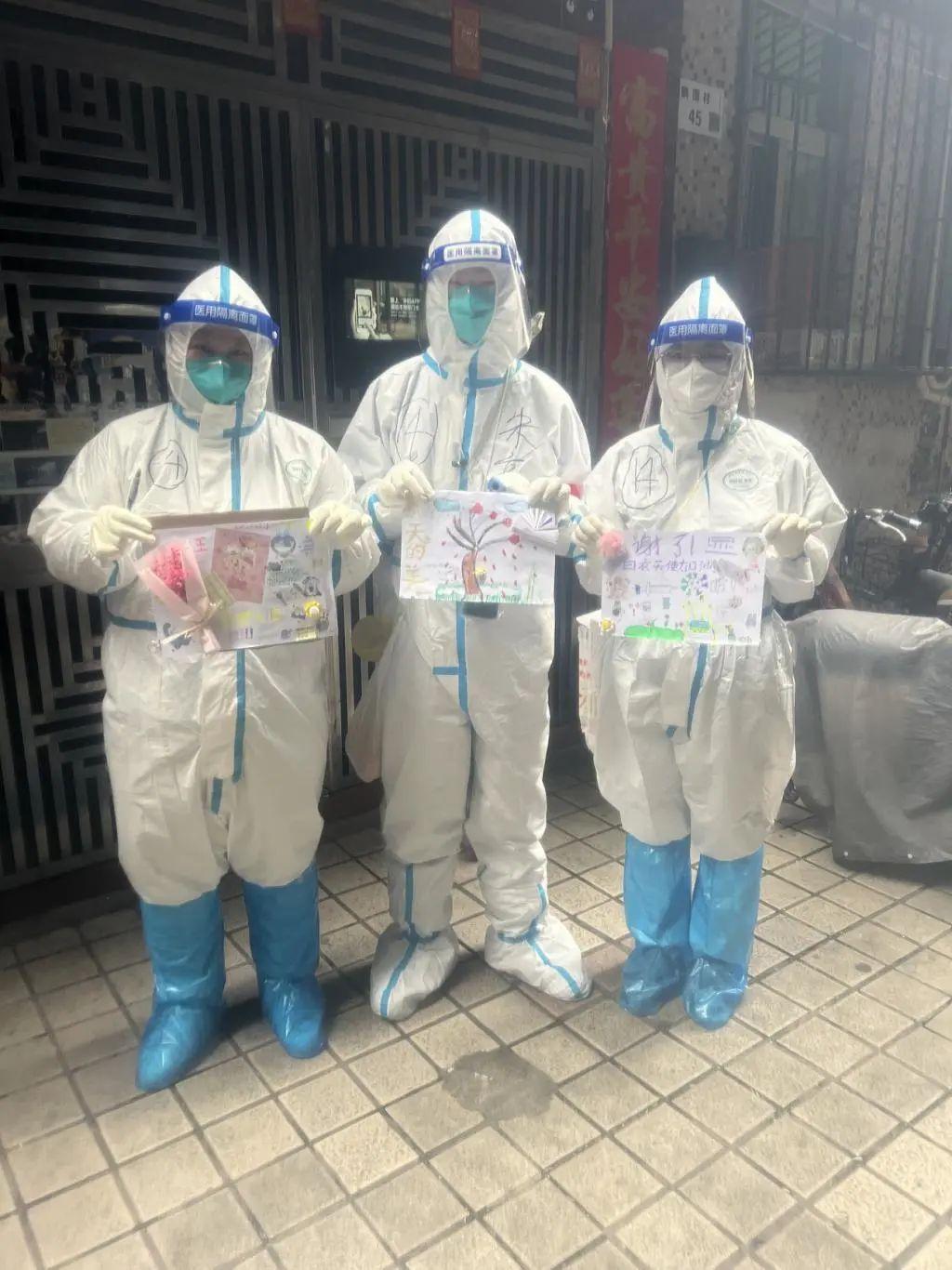 1月18日,罗湖区清水河街道封控区的防疫人员在上门为居民进行核酸采样时,纷纷收到了来自小朋友的 " 惊喜 "!数名小朋友不约而同地在这天送上自己画的画,让防疫工作人员直呼 " 感动 "。
