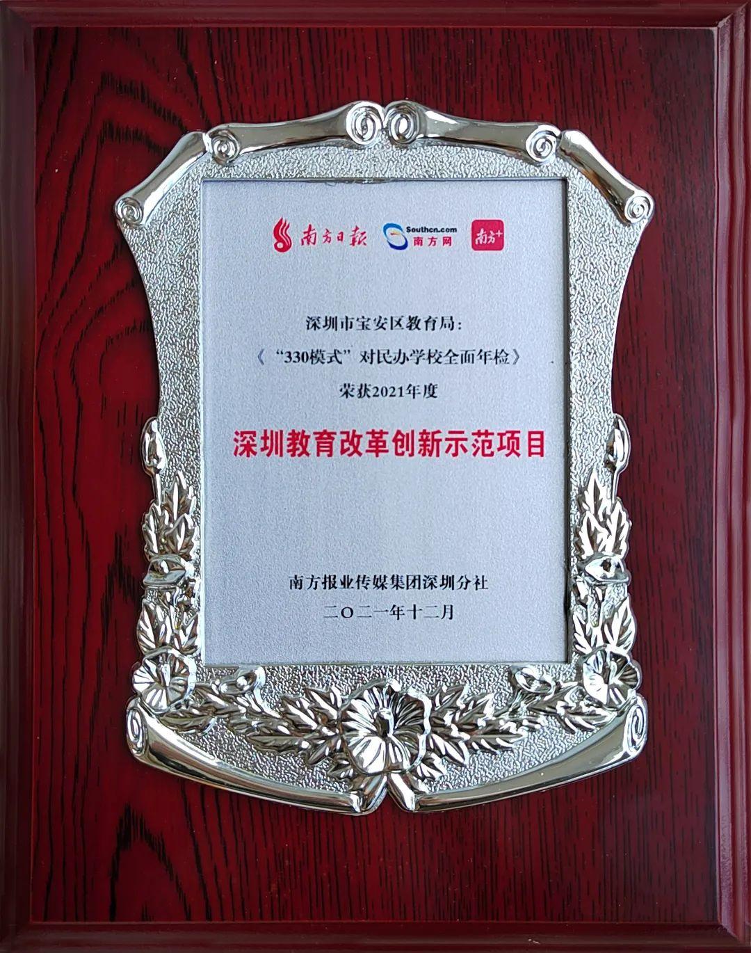 突出问题导向,明确安全、场地、质量3条办学红线,针对办学管理过程精准设置“30条具体指标”,全覆盖开展规范办学行为检查,以年检促规范,以规范促转型,荣获南方日报“2021深圳教育改革创新示范项目”。
