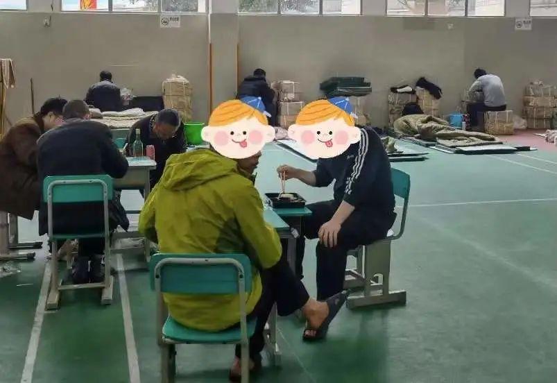 住进来的第二天,谢先生吃上了热腾腾的早饭:茶叶蛋、炒面、糯玉米。午饭和晚饭是四菜一汤,菜色丰富,有蔬菜、番茄炒蛋、丸子等等,“吃得挺好。”