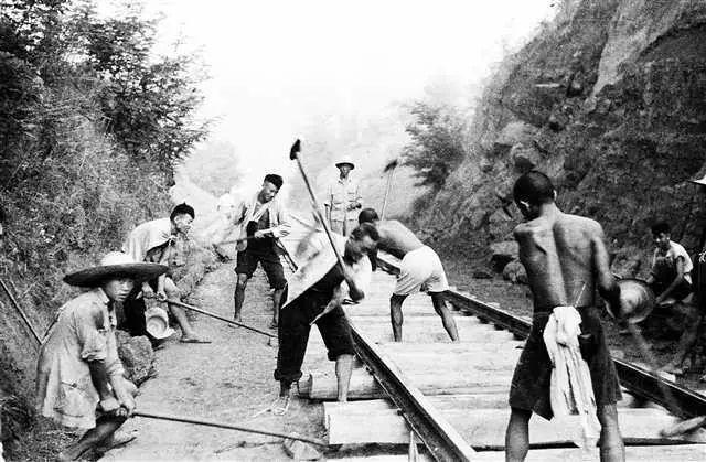 成渝铁路修建时无大型机械化设备,铺设铁轨全靠人力