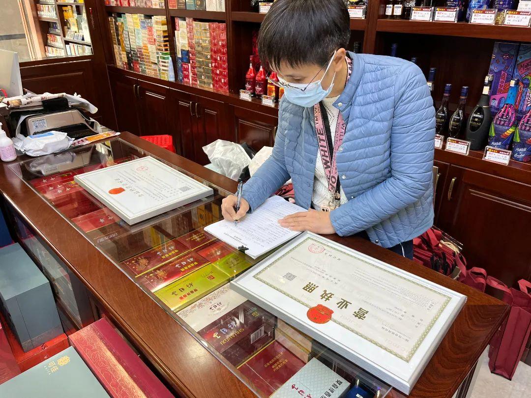 △执法人员对该酒行的营业执照和涉嫌违规产品等进行登记