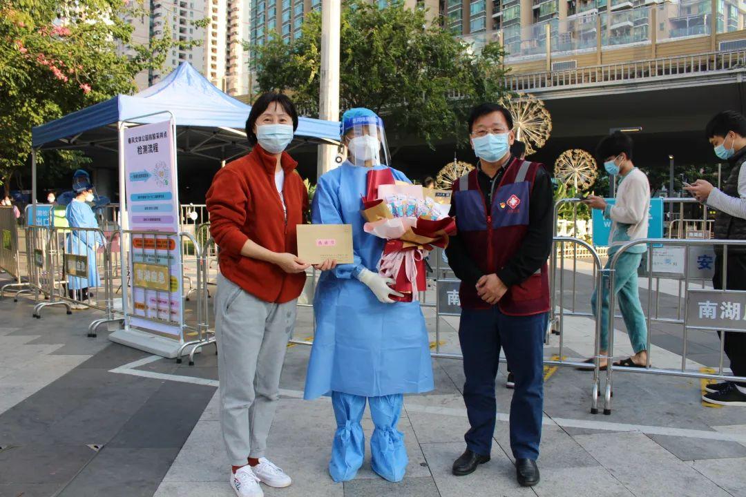 1月19日起,罗湖区卫生健康局二级调研员朱丽桂、刘岭,局工联会副主席汪莉一行前往慰问核酸采样队伍,以及疾控、检验、转运、流调(包括15支外援队伍)处置团队,向他们表示衷心感谢和崇高敬意,并送上慰问品和感谢信,在清水河封(管)控区,区委副书记、区委政法委书记黄生文、清水河街道党工委书记魏刚、办事处主任宫雪参与慰问。