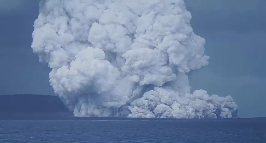 朱健雄1月初拍摄的汤加火山爆发的照片(李女士供图)