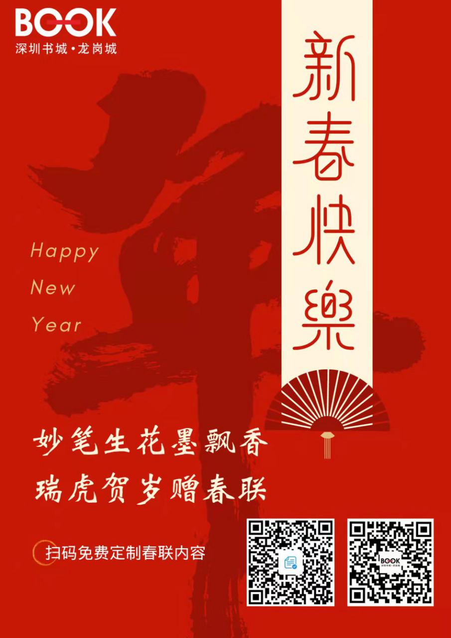 龙岗书城还将推出“妙笔生花墨飘香,瑞虎贺岁赠春联”购书赠春联、“光影喜相伴,过年不落单”留言点赞赠电影票、“约惠新年,愉阅生财”买赠活动、“抽取新年关键词,知识点亮中国年”线上互动、“拆拆我是谁”阿布惊喜礼盒等丰厚的文化福利,让好书陪伴市民读者度过一个温暖祥和、富有诗书气息的虎年新春。