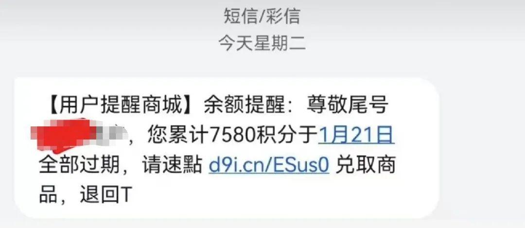 临近春节,不少平台商家开始发送各种活动短信,其中有商家推出积分清零活动,催促尽快去兑换平日各种消费积攒的积分,提醒再不及时兑换有的可能就会过期作废。这时候骗子也盯准“契机”,来忽悠人了。