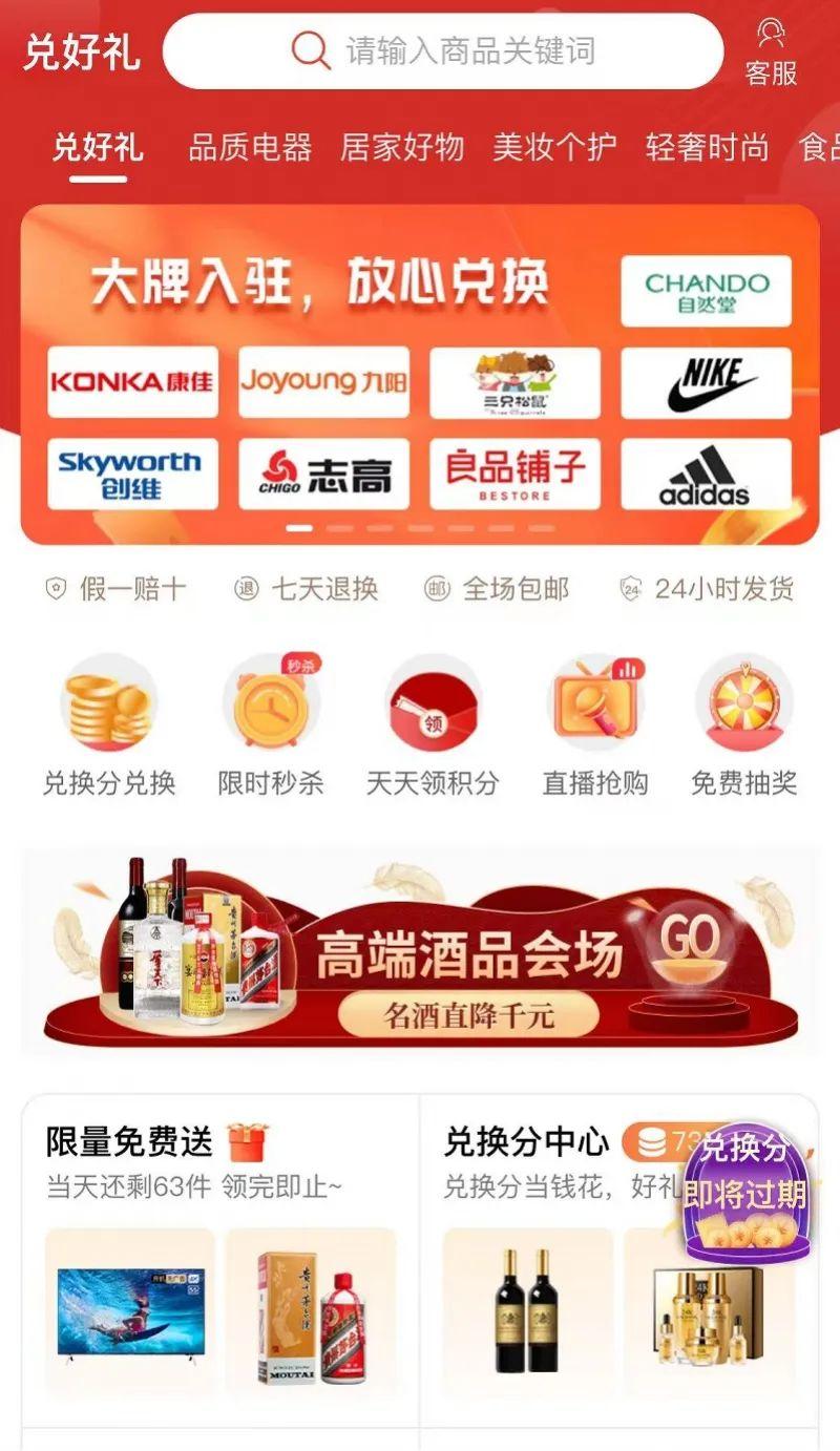 基本所有的商品都被划去了原来昂贵的价格,留下一个比原来便宜数倍的价格,兑换热度基本在1w+以上,商品均可积分兑换,但需要支付一定的金额。