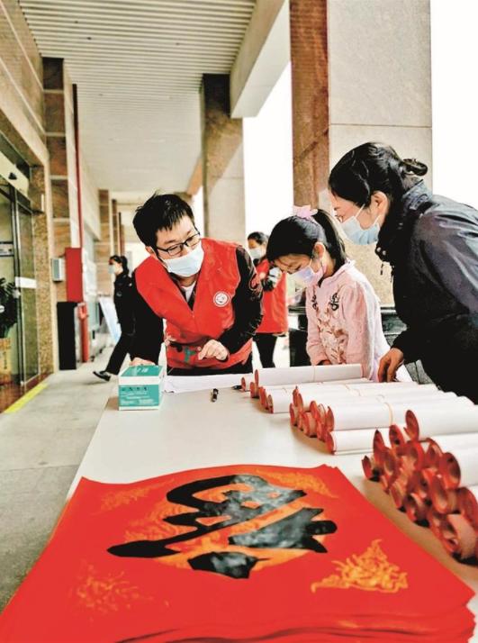 活动现场,居民按预约时间段有序到场,测量体温,领取春联。有位带着孩子过来领取春联的居民说:“每年春节来临之际,社区都会举办送春联活动。今年我们留深过年,虽然是租的房子,但贴上春联能让我们感受到浓浓的过年气氛,非常喜庆。”
